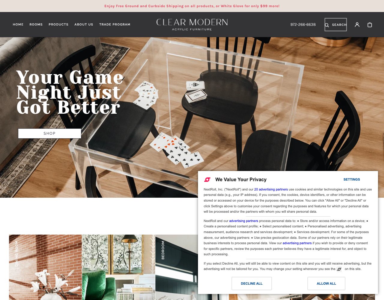 Clear Modern is a Dallas-based luxury furniture manufacturer specializing exclusively in handcrafted acrylic and lucite pieces. Operating as an in-house manufacturer in Texas, the brand produces its entire catalog domestically without middlemen. The company draws on 40 years of experience in the acrylic furniture industry. Their focus is entirely on transparent designs that add function to a room without adding visual weight.