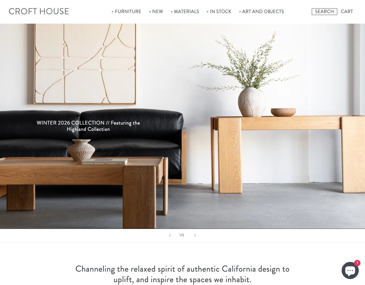 Croft House is a Los Angeles furniture manufacturer that builds single-batch, California modern pieces directly in its Southern California workshop. Founded by Riley Rea and Alex Segal, the brand designs and produces its entire catalog in-house rather than reselling other labels. Their aesthetic blends relaxed coastal influences with architectural frames.