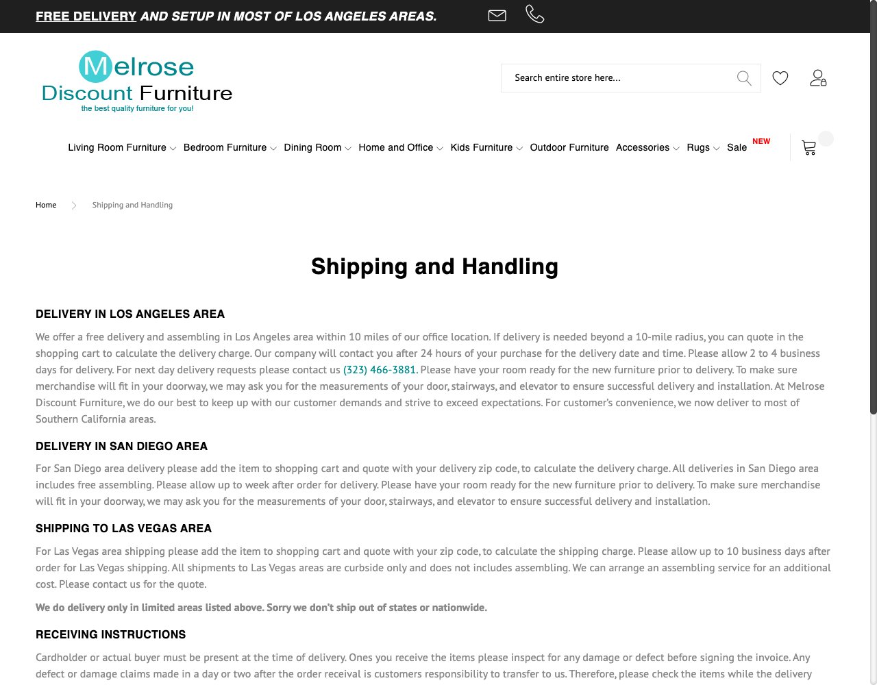 Melrose Discount Furniture is a budget-friendly home retailer headquartered in Los Angeles, California, that has been operating since 2006. The company functions as a reseller of white-label and catalog furniture sourced from international manufacturers. They serve Southern California and Las Vegas, offering free local delivery and assembly for regional customers.