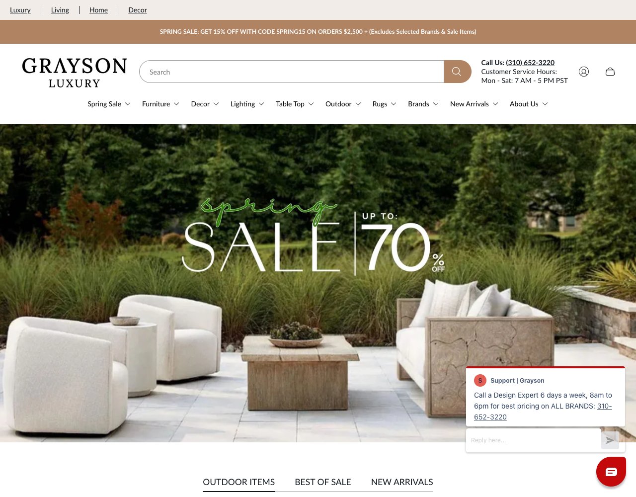 The store offers a curated collection of handcrafted furnishings, masterpiece lighting, and distinct decor from various innovative designer brands. Grayson Luxury is a reseller, not a manufacturer. It features pieces from high-end names like Marge Carson, Christopher Guy, Hancock & Moore, and Caracole.