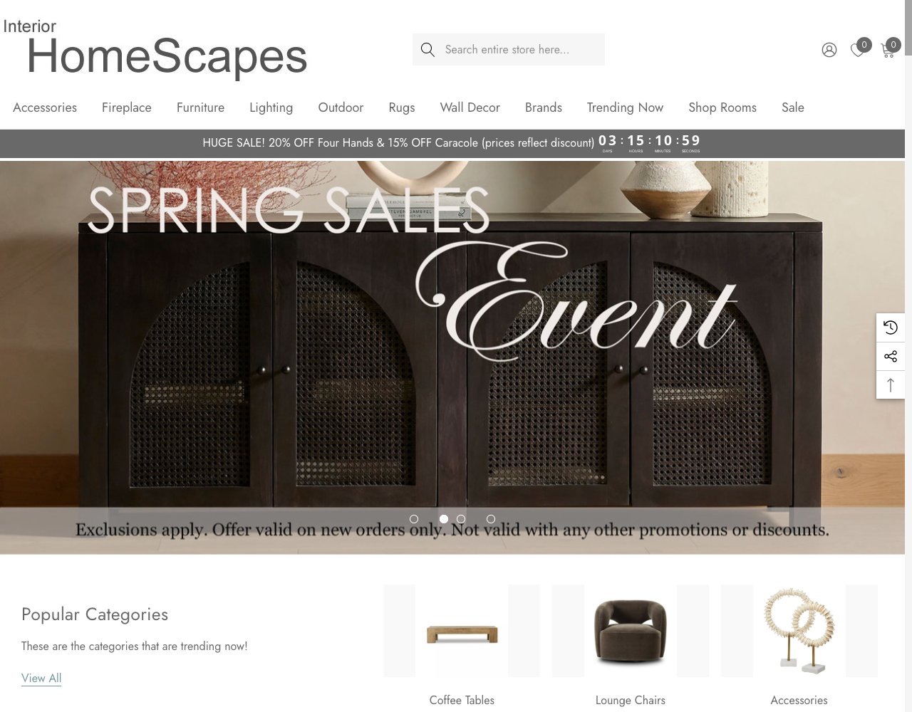 Interior HomeScapes is an online furniture retailer based in Atlanta, Georgia, offering home furnishings from a variety of manufacturers. Founded in 2002 by Chris Campbell, the company also operates a physical showroom called Topography Home. They aim to provide quality products and a unique shopping experience.