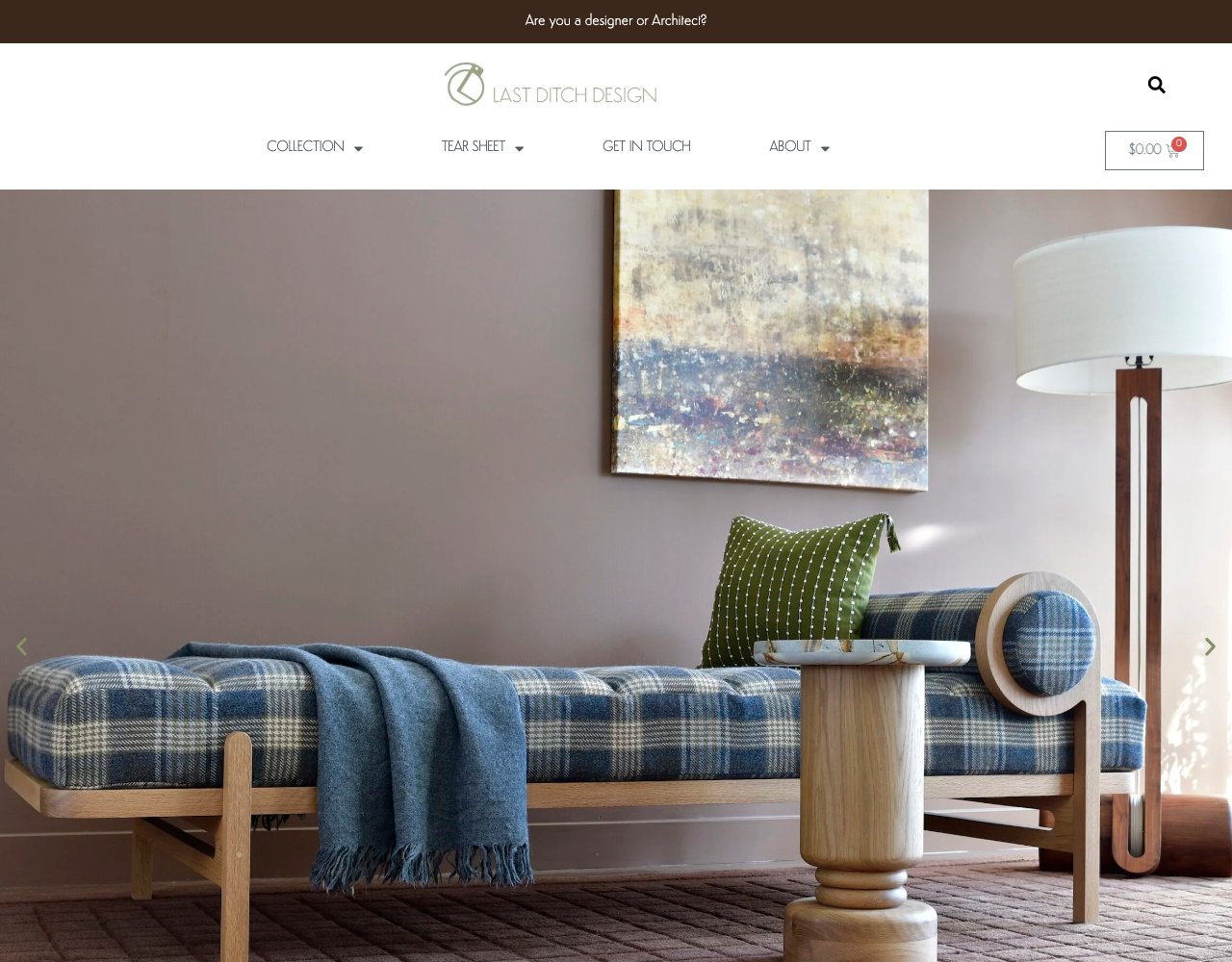 Last Ditch Design is a luxury furniture studio based in Los Angeles, California, that specializes in handcrafted, made-to-order pieces. Founded by designer Todd Hewitt, the brand debuted its flagship LD2 collection in late 2022. The studio operates primarily on an in-house manufacturing model while collaborating with local artisans for specialized fabrication involving stone, steel, and custom upholstery.