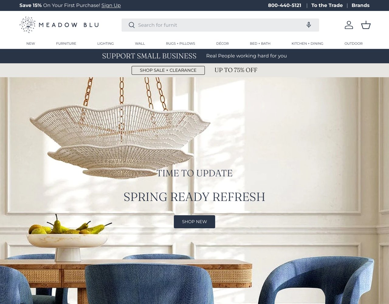 Meadow Blu is an online home furnishings retailer launched in 2020 from its Charleston, South Carolina parent company, Candelabra Inc. Established in 2001, the original company focused on lighting before expanding its passion for home decor into the broader collection offered today. Meadow Blu provides a comprehensive shopping experience for the entire home.