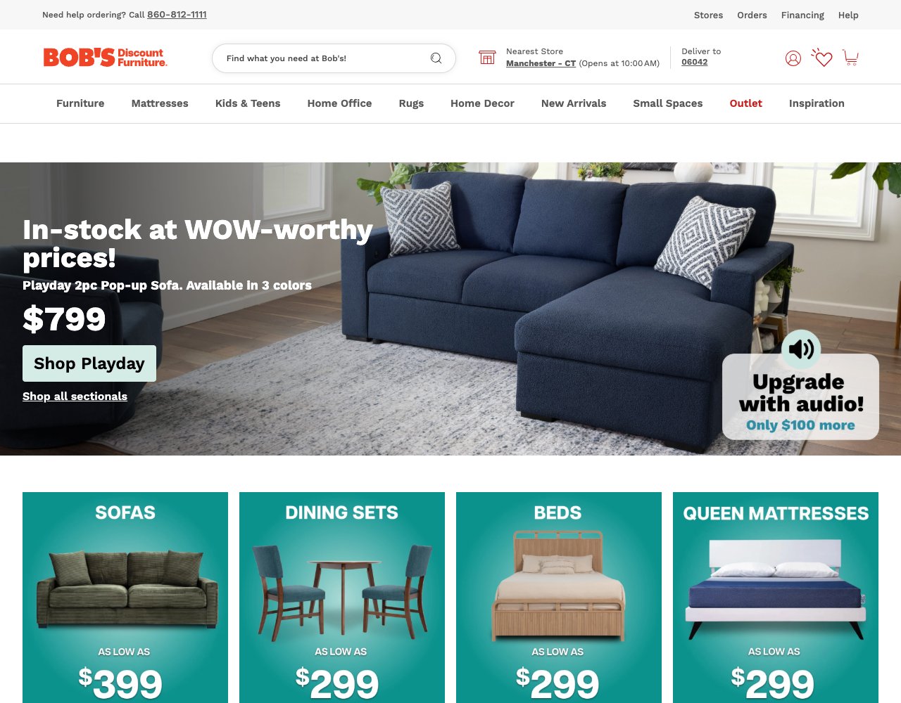The store's inventory includes a variety of styles, from contemporary pieces with clean lines to more traditional designs. Bob's sells its own private label products, including the Bob-O-Pedic line of memory foam mattresses. This foam is also integrated into many of its upholstered furniture items.