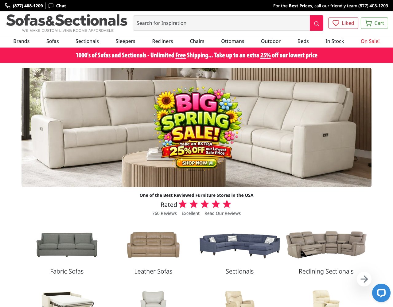 Sofas and Sectionals is an online furniture dealer operated by its parent company, TruRooms Inc., since 2015. The store specializes in comfortable seating for living rooms and entertainment spaces, offering a large inventory of sofas, sectional couches, sleepers, and recliners.