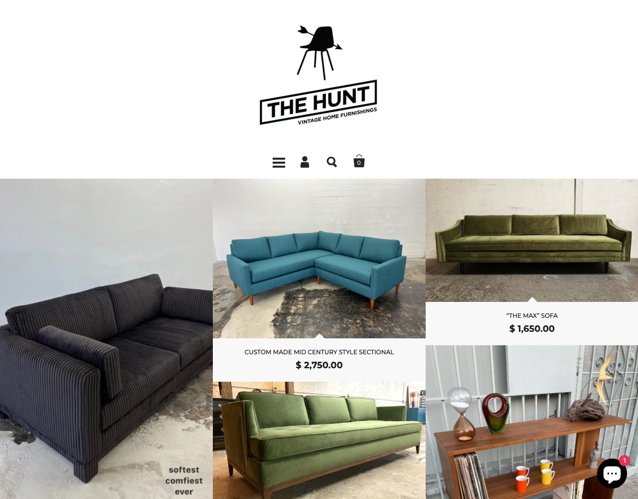 The Hunt Vintage is a furniture store with a physical showroom in the Echo Park neighborhood of Los Angeles. The store operates as both a local shop and an online warehouse for its collection of furniture, art, and lighting.