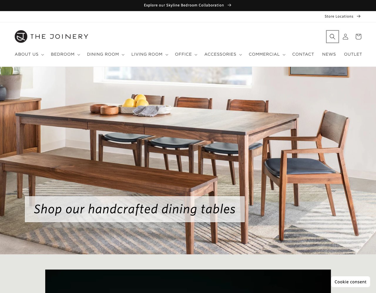 The Joinery is a furniture manufacturer and retailer based in Portland, Oregon, specializing in handcrafted solid wood pieces. Founded in 1982 by Marc Gaudin as a small refurbishing shop, the company now operates under the leadership of CEO Jon Blumenauer. All furniture is built in house at their manufacturing facility near the St. Johns Bridge. The brand blends modern and Shaker design influences to create heirloom quality items.