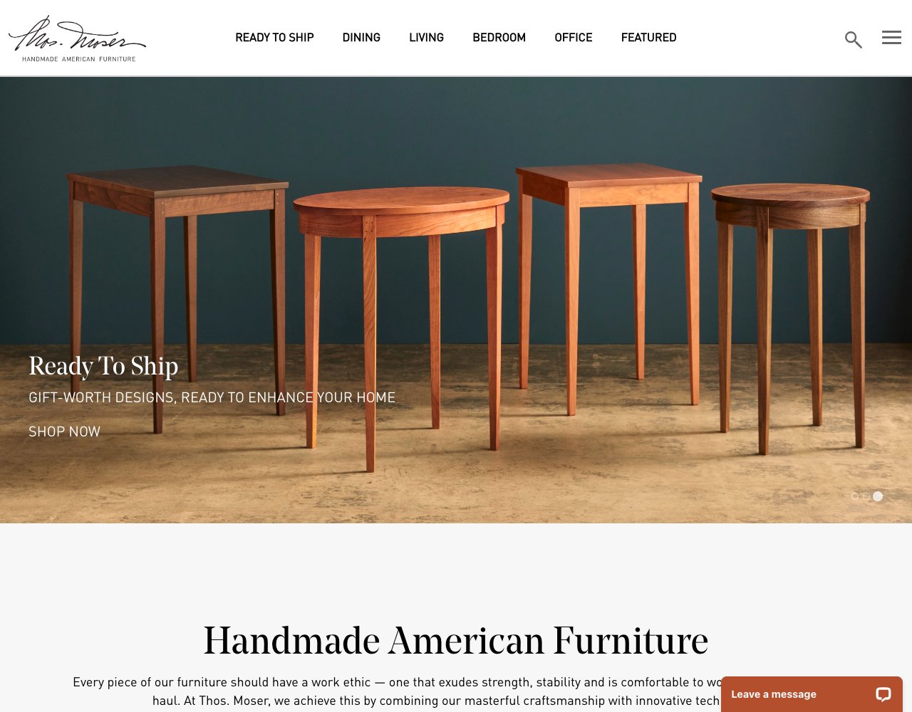 The brand's designs are rooted in the American Shaker tradition, emphasizing function and visible joinery over embellishment. Today, around 70 craftspeople work in the company's 90,000-square-foot workshop in Auburn, Maine. Each piece of furniture is built from start to finish by a single artisan and bears their signature upon completion.